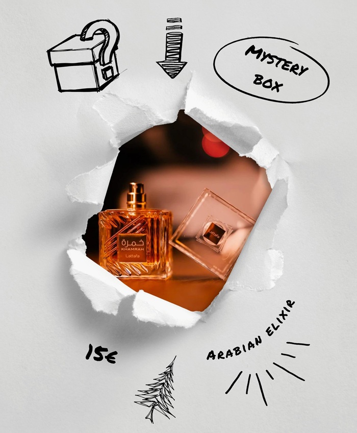 Παράλληλα, διαθέτουμε ένα Christmas Mystery Box στα 15 ευρώ, όπου διαλέγουμε εμείς προσωπικά 5 αρώματα σε μικρές συσκευασίες ανάλογα με τις προτιμήσεις σας (fresh, floral, spicy, gourmand) και το συσκευάζουμε ως δώρο για εσάς και τους αγαπημένους σας.